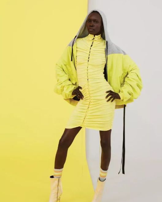 熒光黃綠與中性色形成鮮明對比,為整體造型增加趣味性,與黑色或藍色同時使用則能打破沉悶增加靈性,本季大熱的運動時尚使用了較多的熒光黃綠。