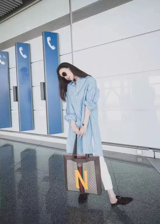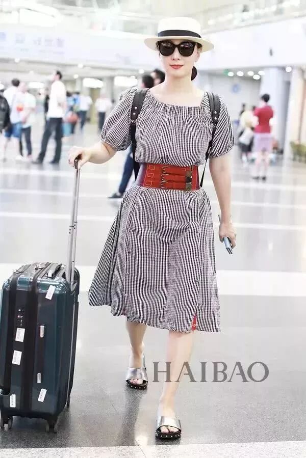 戚薇用澡堂拖+浴袍,穿出了另類的慵懶時髦。