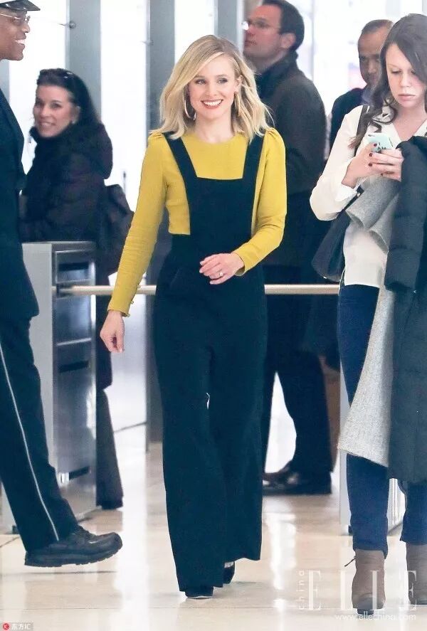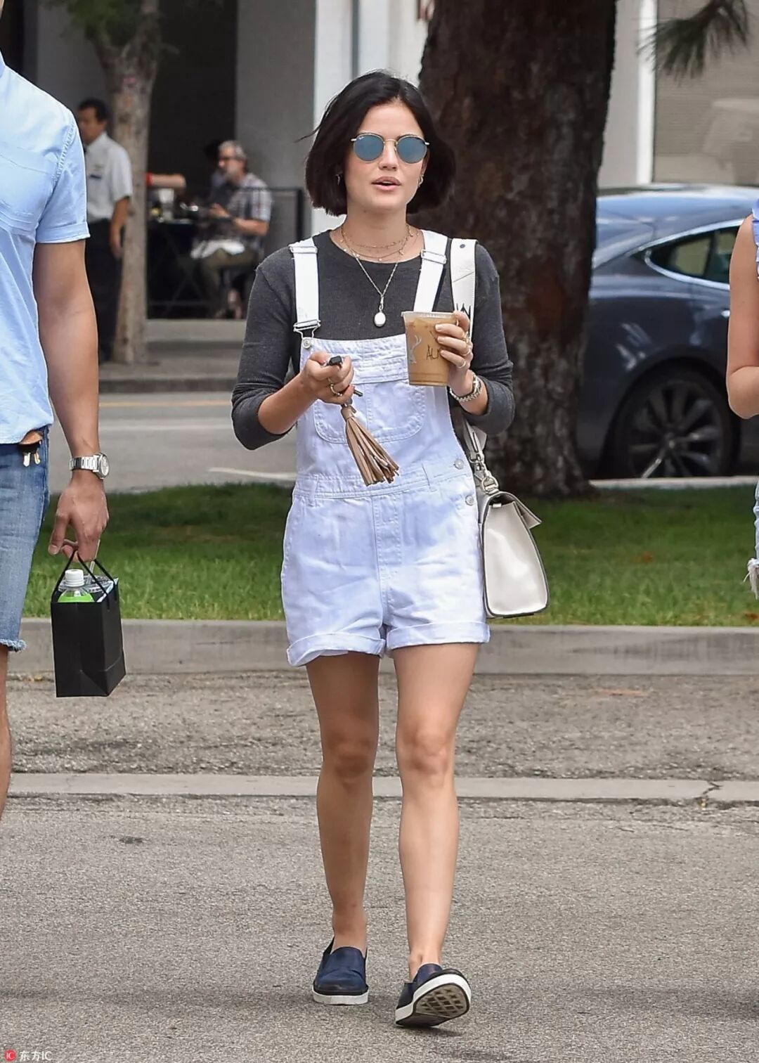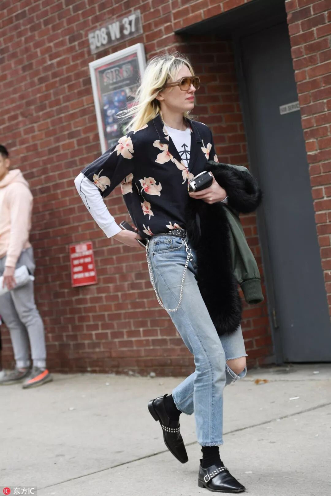 Nicola Peltz身穿白色透視木耳邊緊身長袖T,搭配黑色腰包、牛仔褲以及踝靴。白色緊身長袖上衣雖然好看,但白色畢竟是膨脹色,稍微有點肉肉的女生在選擇長袖上衣的時候還是盡量選擇寬鬆款比較好哦!另外各位少女們如果覺得踝靴太厚重的話,馬丁靴減齡效果滿分,也是個很不錯的選擇!