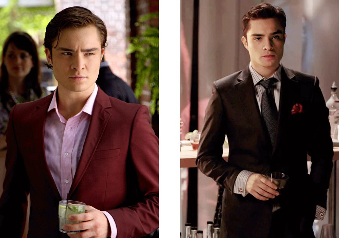 很有個性和腔調的貴公子Chuck,雖然長得不算是三個男主里最帥的,霸道的總裁人設、還有對Blair的癡情讓人沒法不愛他,最主要他還是這劇里最時髦的男人,愛穿彩色的西裝,讓風騷和質感齊飛。