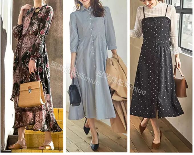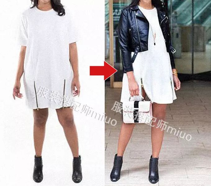 另外,在連衣裙外面穿外套,也可以起到分割身材比例的作用!如下圖: