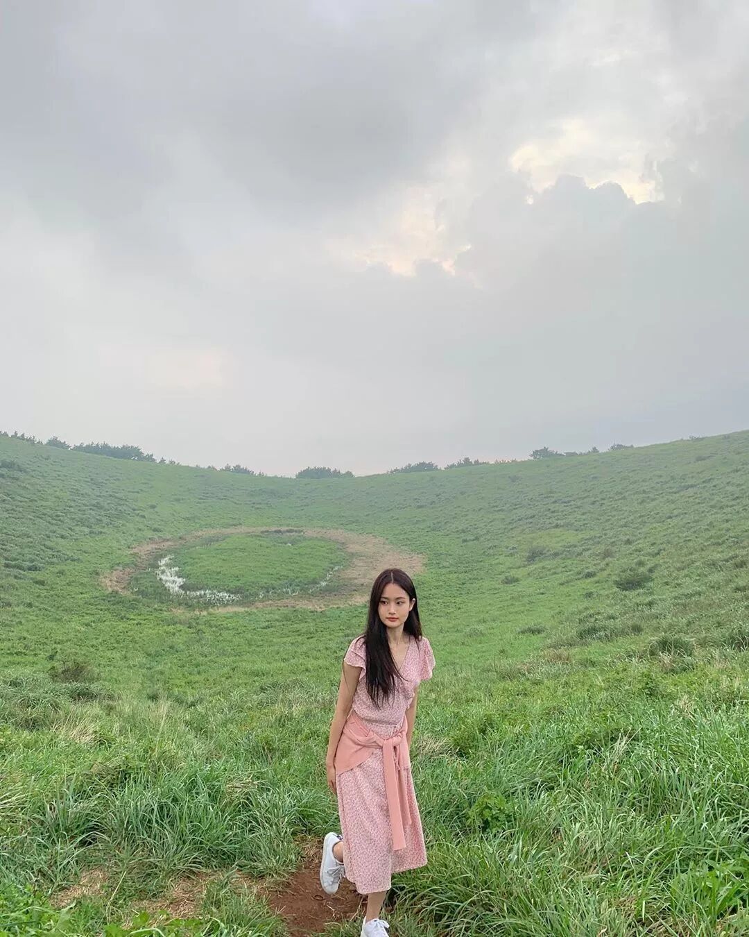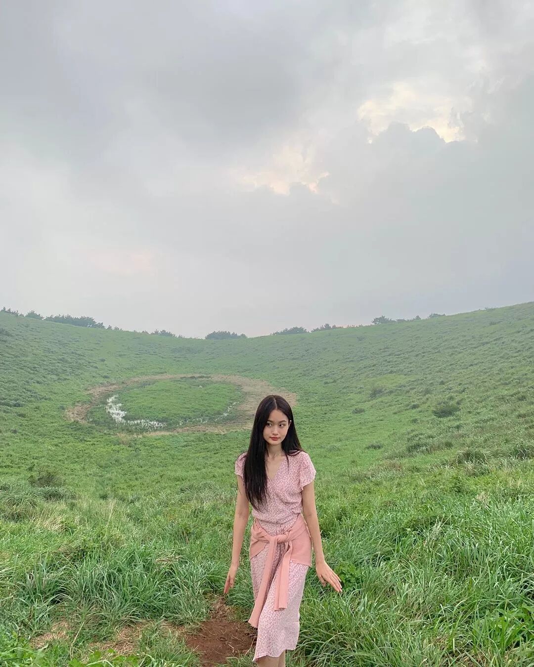 碎花小長裙腰間系著一條薄衫外套,有點隨性和迷人。