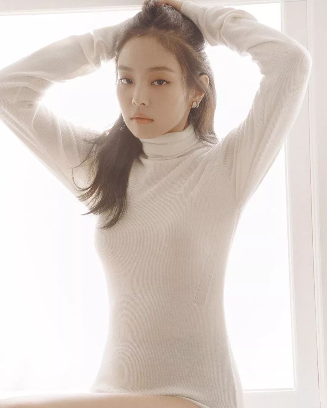 最近,Jennie為畫報拍攝的一組寫真,純白色的背景和白色的服裝營造出了一種恣意慵懶,柔情嫵媚的感覺。