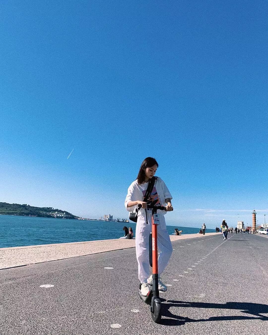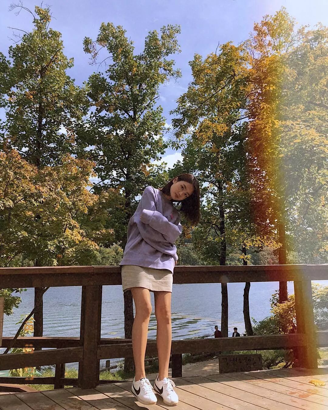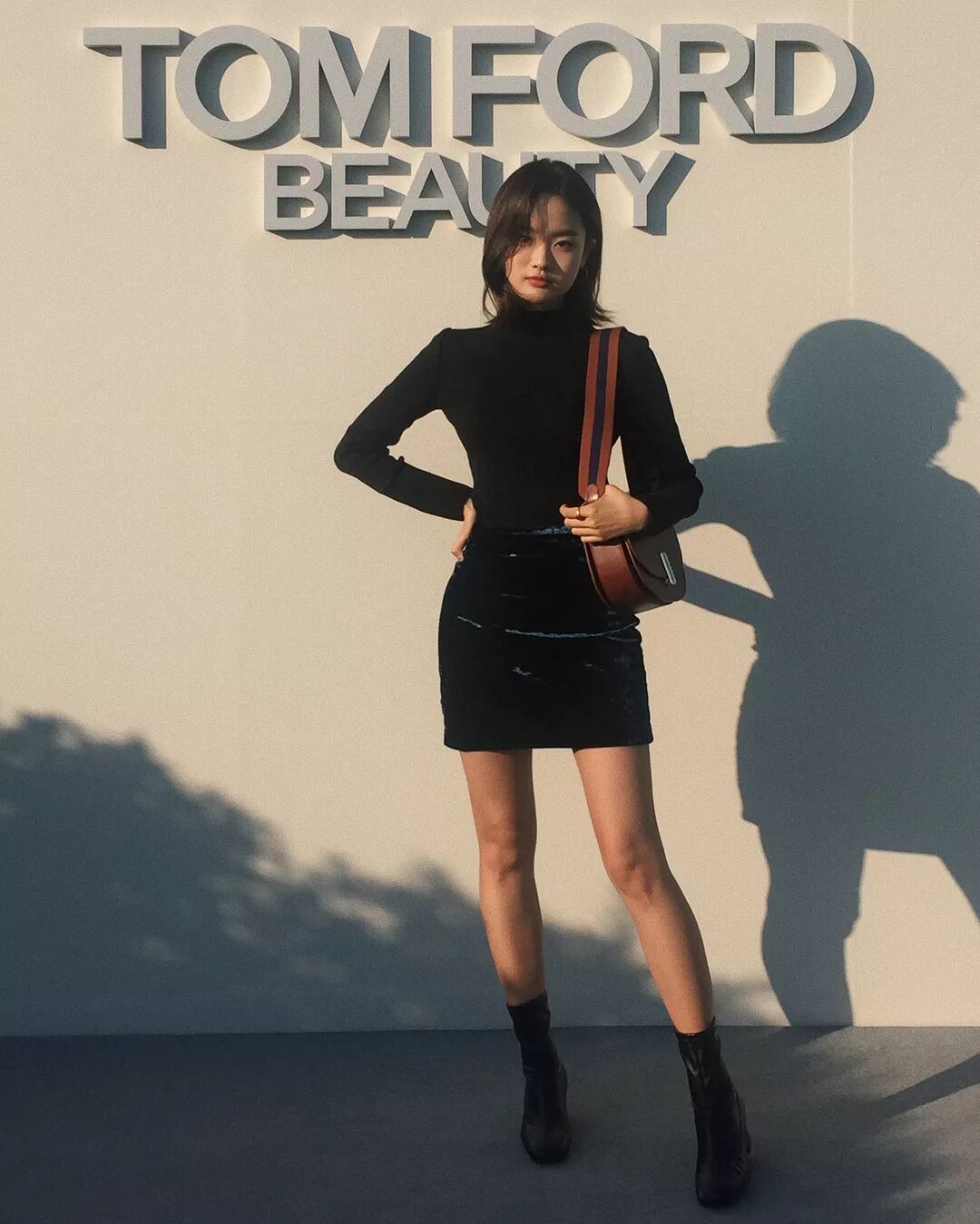 慵懶風也可以很迷人,齊腿小短裙擺一個隨意造型。