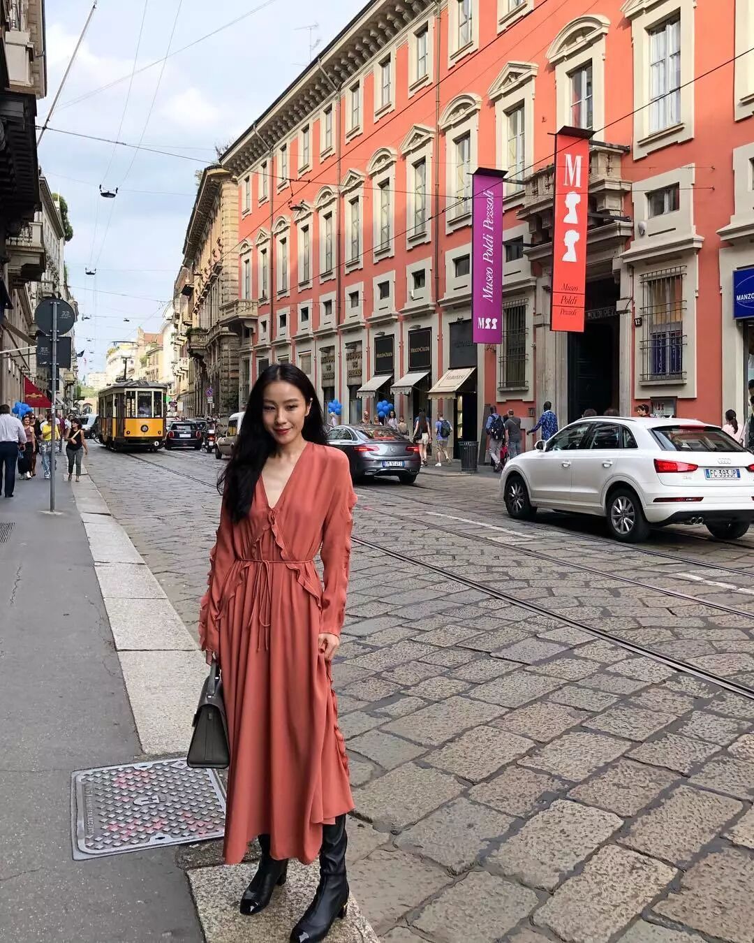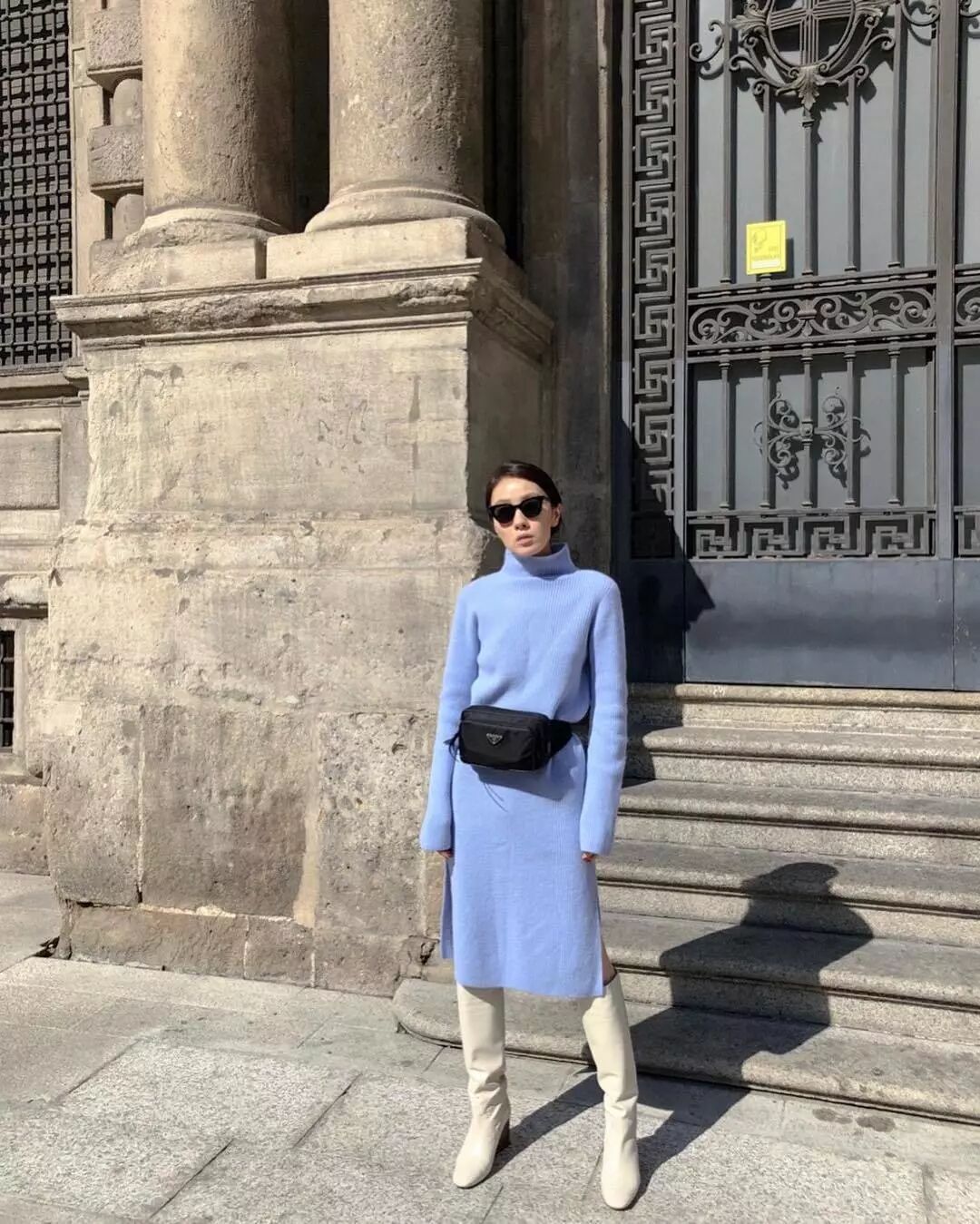高筒靴配飄逸的長裙,優雅中帶著點風格真的是絕妙。