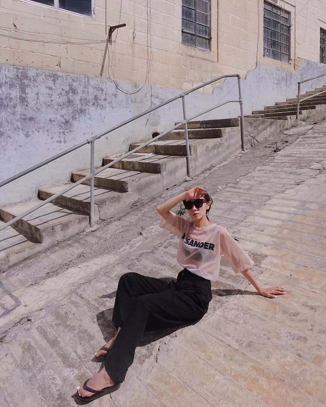 隱隱若現的薄衫,寬鬆的闊腿褲顯現出一種舒適感。