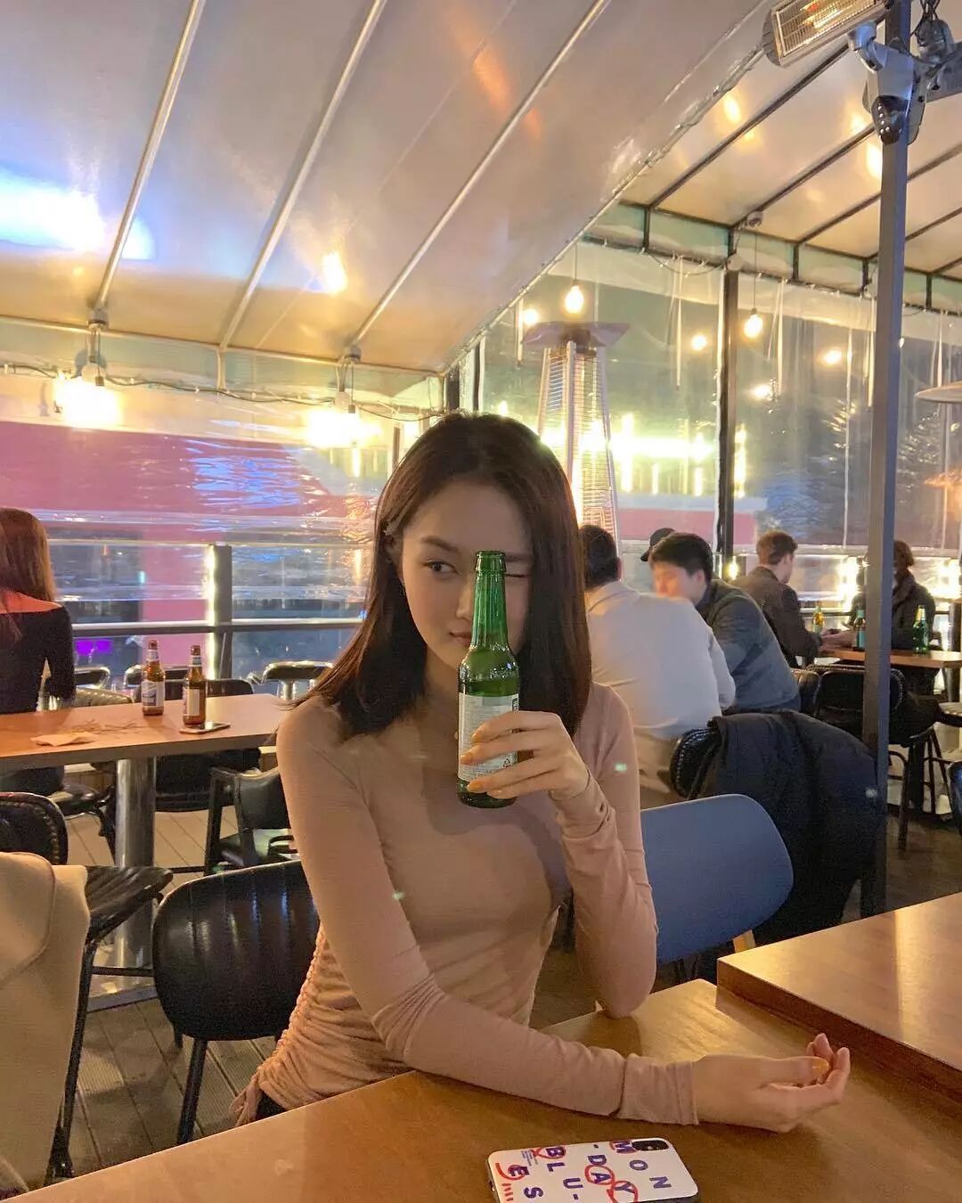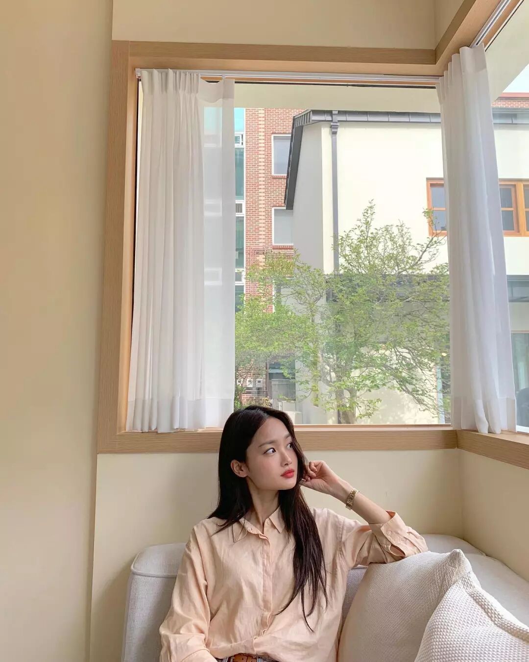 裸色的緊身長袖,裸色給人一種溫柔平靜的感覺。