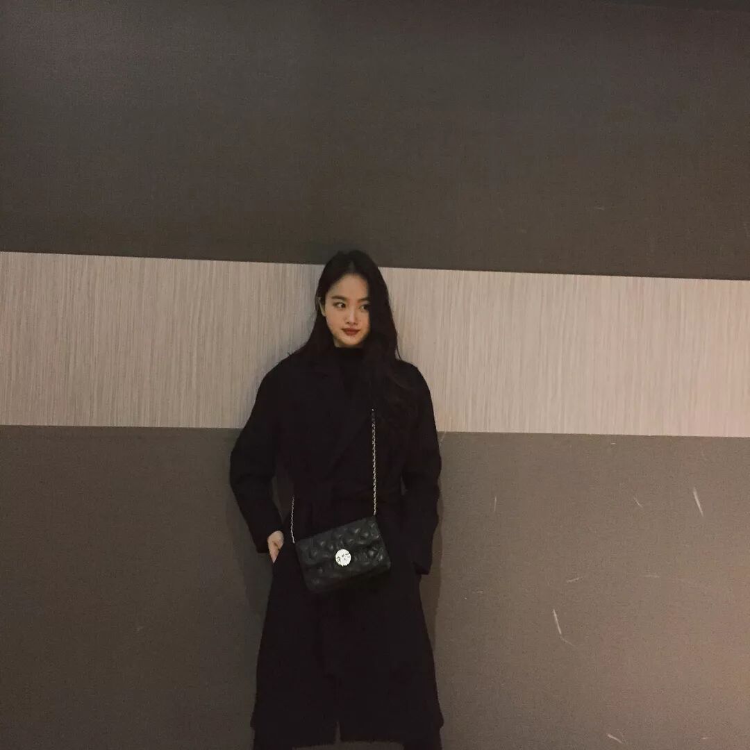 溫暖的黑色大衣,A字的下擺有著簡單的設計感。