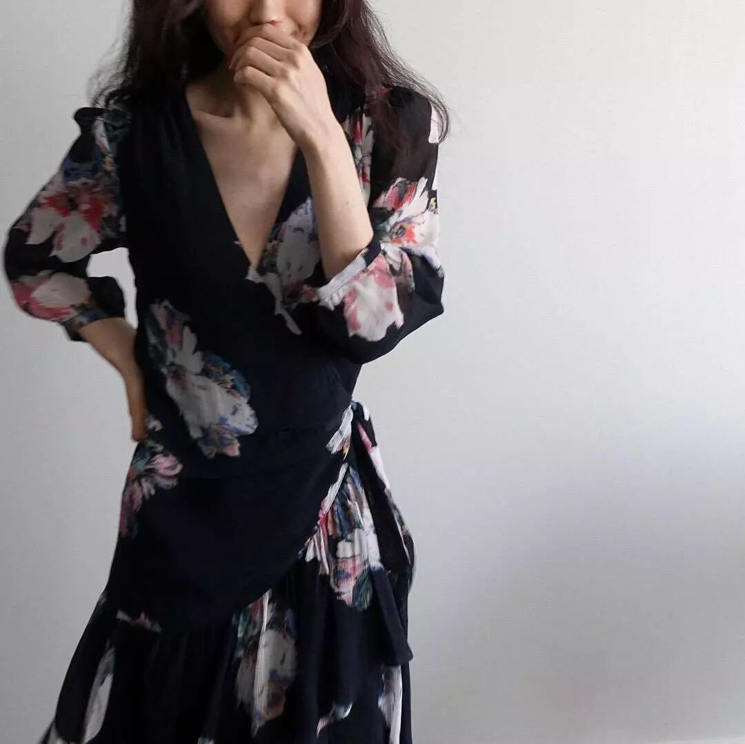 迷人的花裙子,灑脫飄逸,小v的設計有點性感。