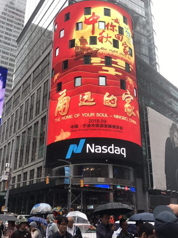 哇撒!美國紐約時代廣場的納斯達克主屏:「甬遠的家-中秋喊你回家」