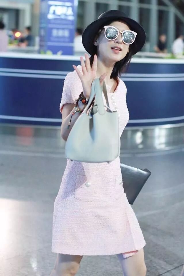 黃聖依身上這身就是一個例子,黑色的帽子選的還是不錯的,看起來有一種名媛的感覺,但是這個粉色的裙子就太過於少女了