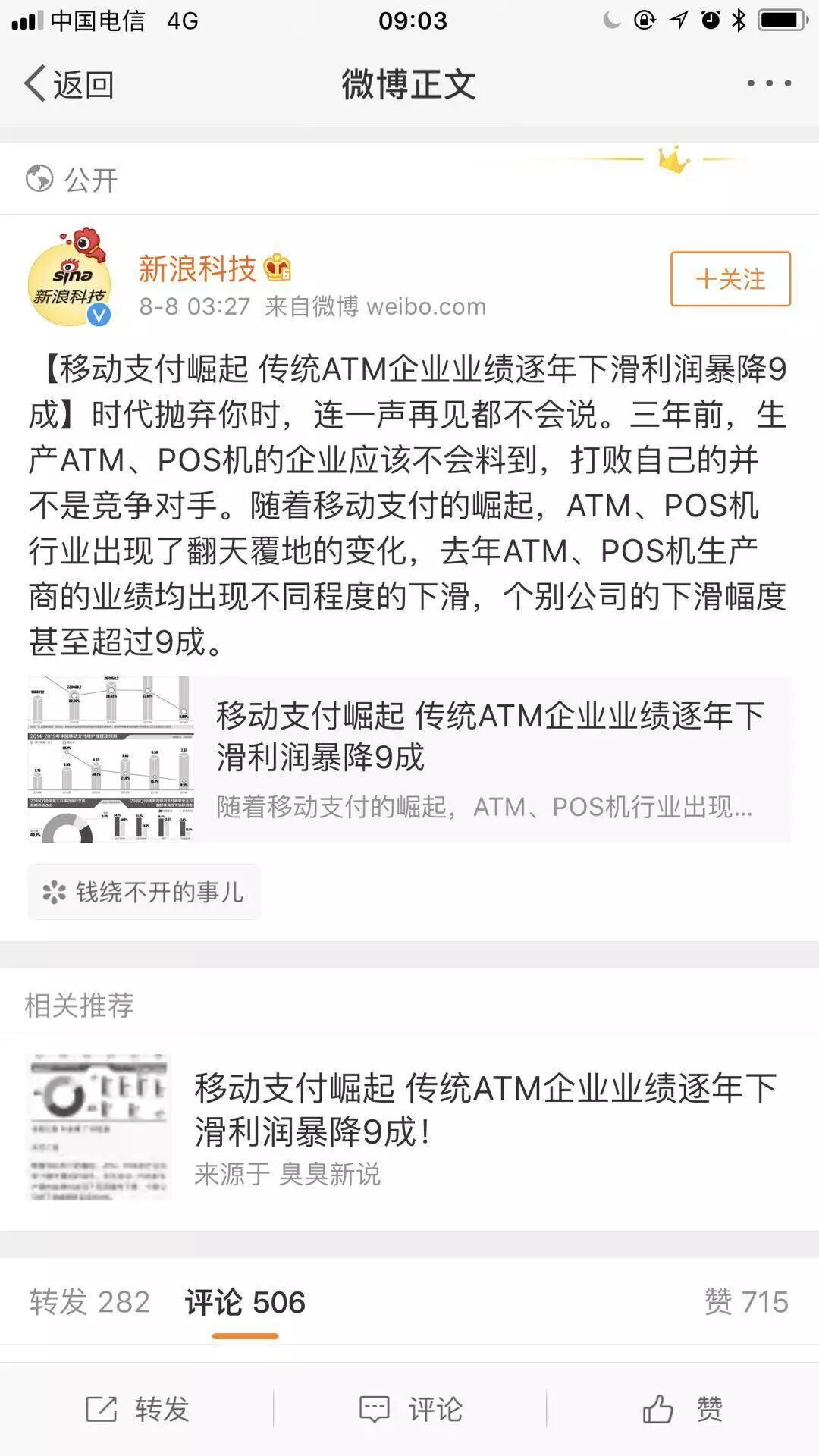 而隨著移動支付的崛起,銀行ATM機業績逐年下滑,銀行也迎來了失業潮。