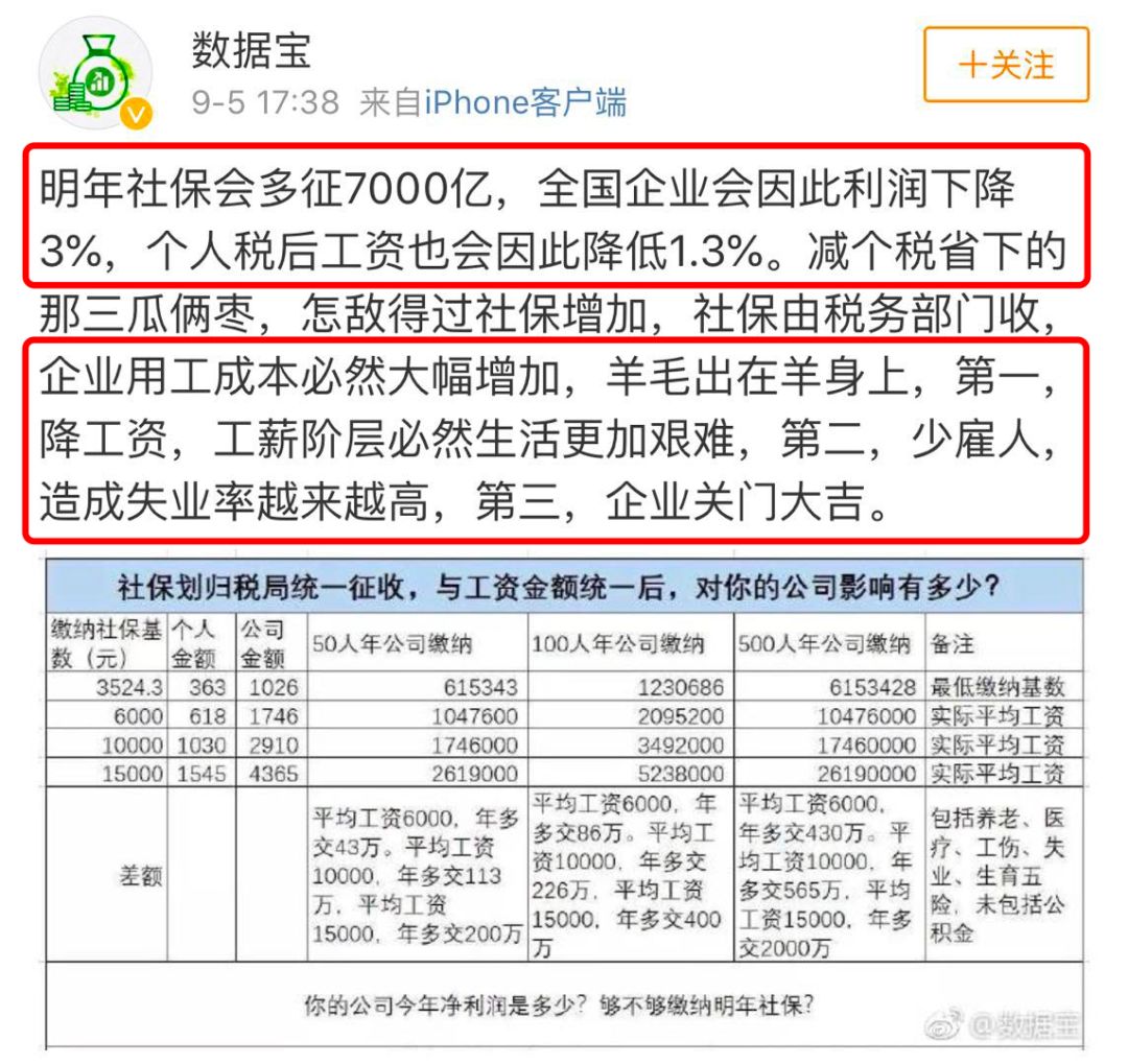 稅收更高,原材料漲價,生產和經營成本提升,增幅變慢,企業利潤一直在下滑。加上從2019年起,社保改革,自2019年1月1日起劃歸稅局統一征收,企業要幾乎要多交1倍的員工社保費用。