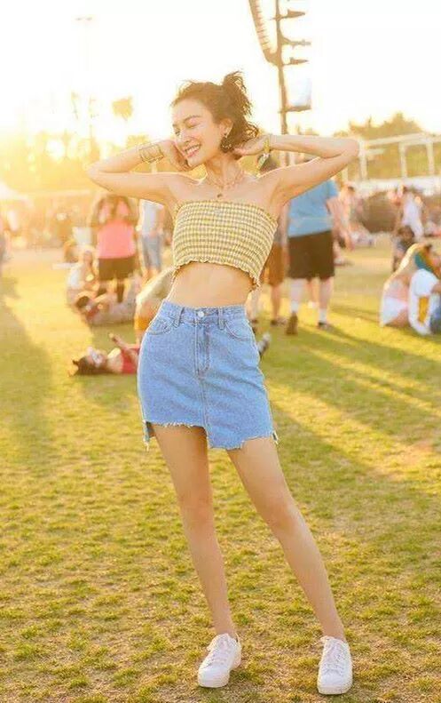 上本身不算胖的吳昕選擇這樣的格紋上衣,瞬間露出小蠻腰,並且牛仔半身裙的不規則設計個性時尚,不落俗套,元氣滿滿。