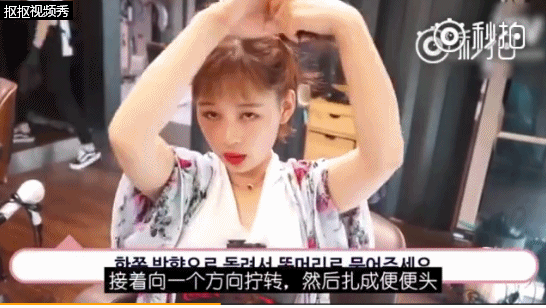 ▲第四步:拿住一側紮好的辮子朝著一個方向擰轉,紮成迷你丸子頭。