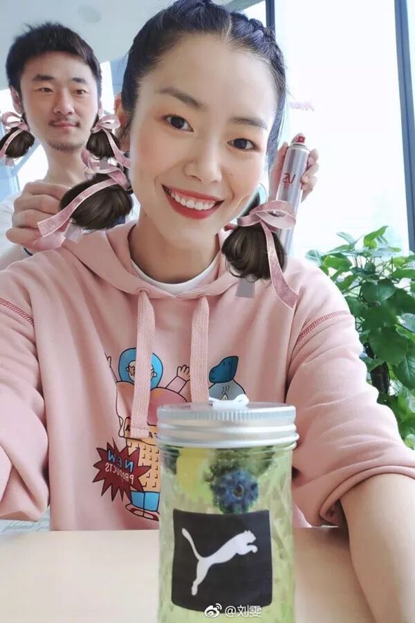 ▲越來越會玩的大表姐還用修圖軟件給自己來了款 新髮型,羊角辮秒變雙丸子頭,可愛指數爆表。