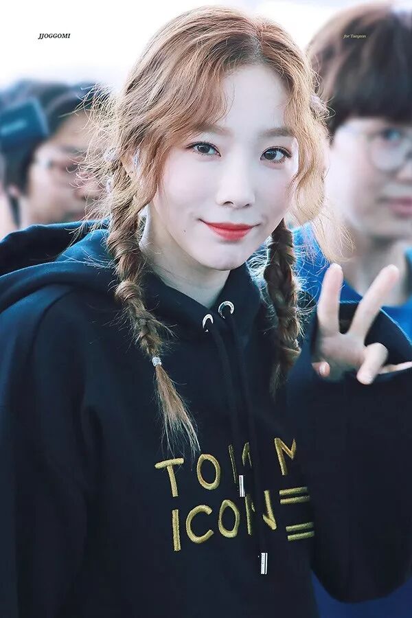 ▲最近現身機場的泰妍就紮了雙麻花辮,額前留有卷翹的瀏海,整個人顯得慵懶又俏皮。