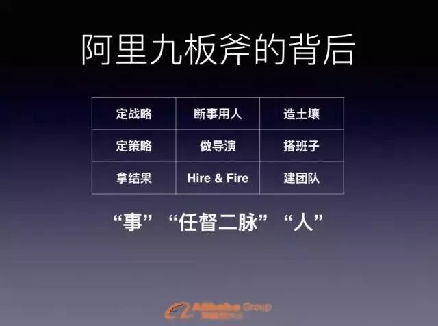 阿里形成了自己的主管力「九板斧」體系,這套體系分為三層:「腿部」包括拿結果、Hire&Fire、建團隊,「腰部」包括定策略、做導演和搭班子,「頭部」包括定戰略、斷事用人和造土壤。每一層級的主管者只需練好三門「絕技」或關鍵點即可。
