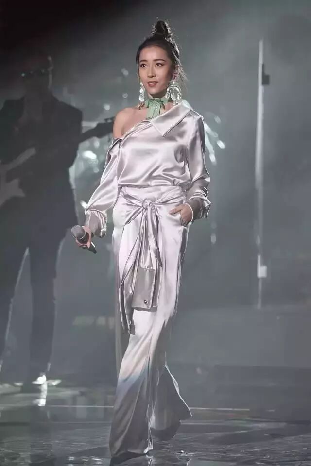 看來吉克雋逸還是比較想白一點的,看她這張臉,應該是在臉上塗了不少金粉吧,看著閃閃發亮呢,跟她手臂和腿比起來,真是白了很多啊。