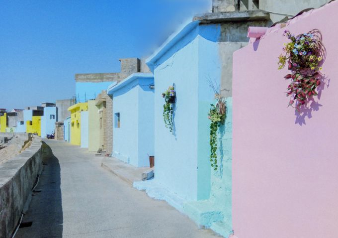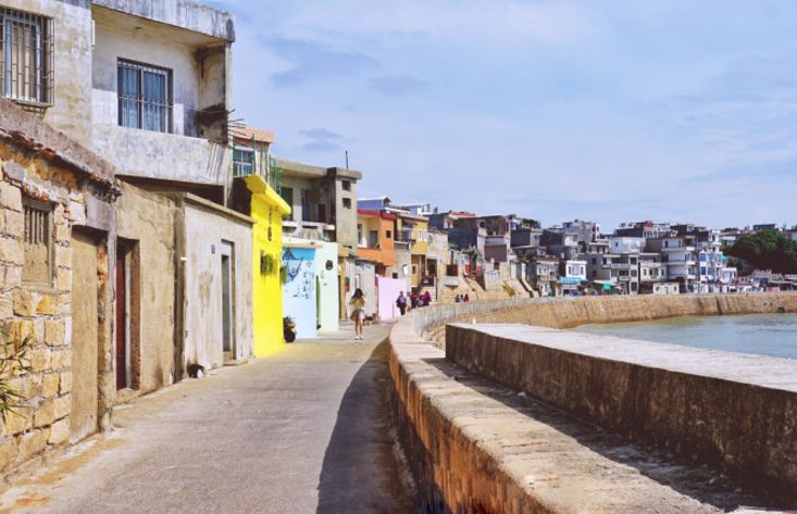 這里沿海的房屋牆壁被粉刷成了五顏六色的彩繪牆,明媚的色彩點綴著精心搭配的花草,走在里面,像極了愛琴海的聖托里尼。