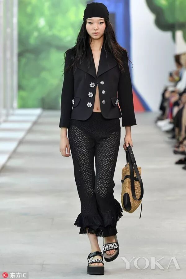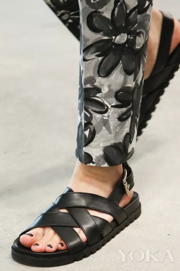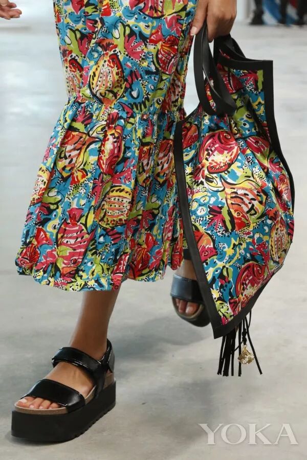 鞋子的部分是以平底涼鞋為主,有穆勒鞋,厚底涼鞋等,都完美地呼應了夏日主題。