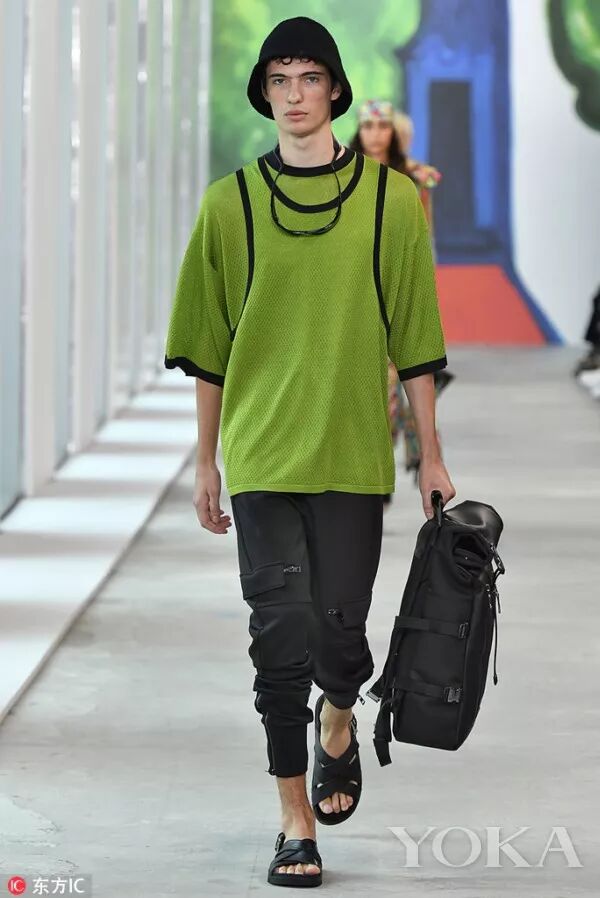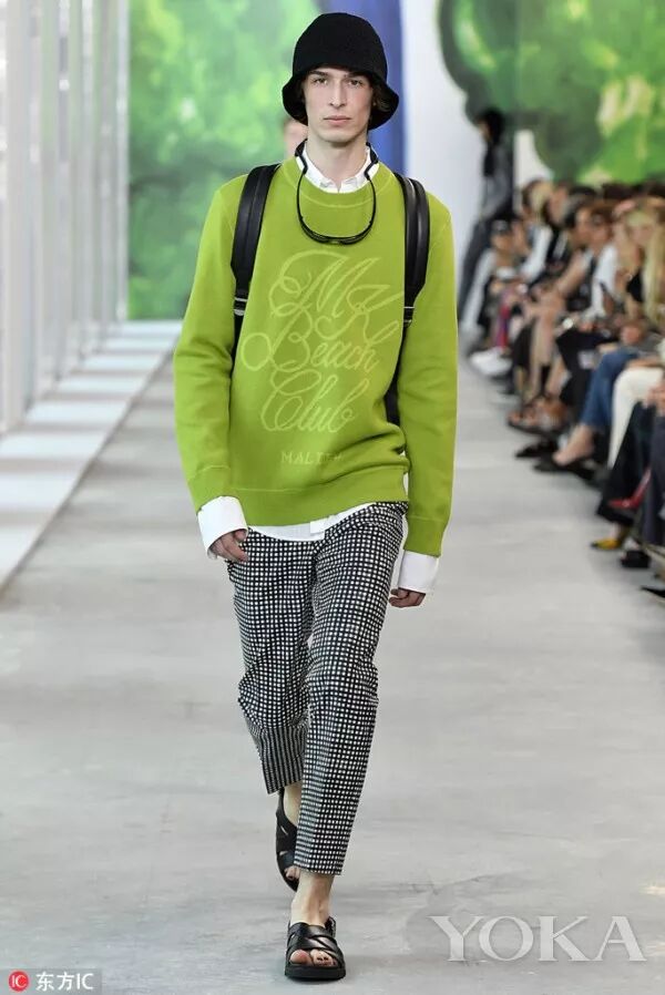 MICHAEL KORS 2019春季男士系列,演繹都市沖浪風。藍色主體的男裝配以黑、白、灰、褐以及青檸綠,清爽又不失沉穩。馬德拉斯花格布短褲套裝,奢華羊絨大衣與巴哈套頭衫,防風外套與光面的運動褲,簡約幹練。手袋與鞋履款式多樣,絨面皮木底鞋、粗獷設計型涼鞋和高幫運動鞋,帆布背包和雙肩背包,完美適用都市生活與海邊度假。