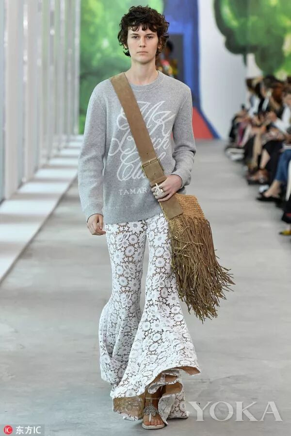 運動風與浪漫主義的完美融合更是此場秀的一大看點。休閒運動服被重新演繹——帶有金屬光澤的防磨外套、羊絨衛衣、手工刺繡牛仔褲、金屬質感的錦緞,奢華且實用。