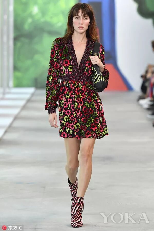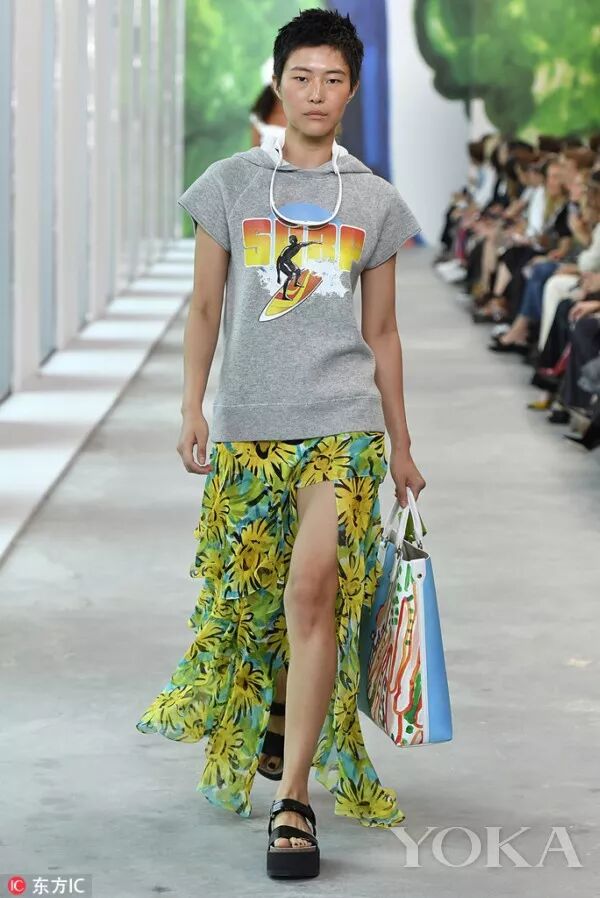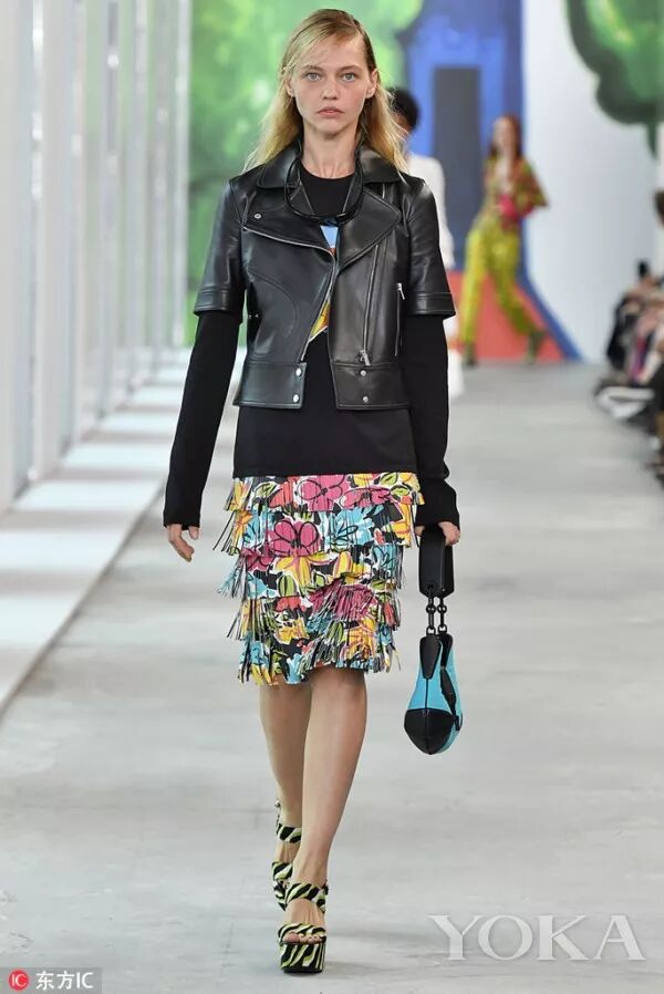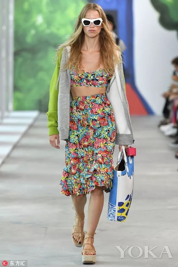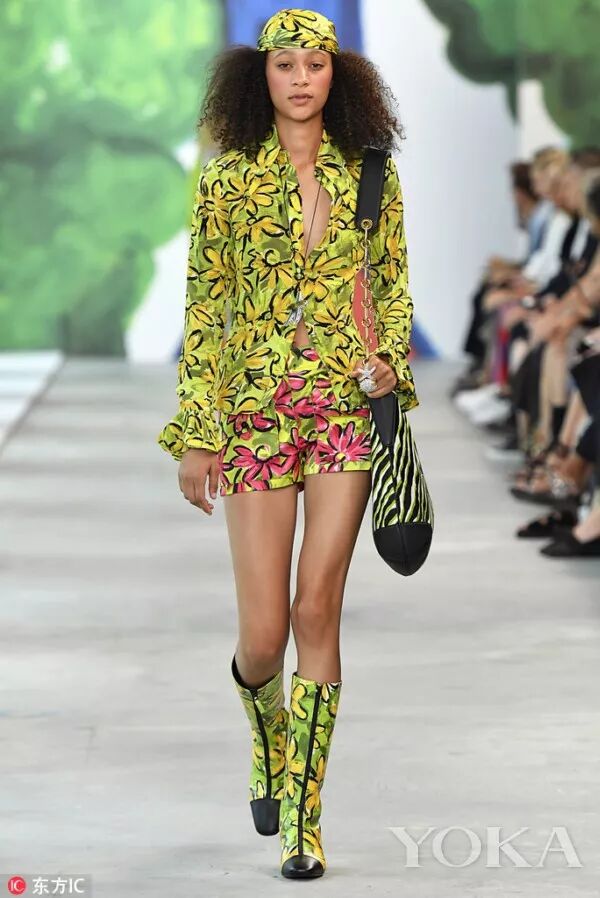 明亮的色彩和大膽的圖案是這一季的亮點,秀場充斥著青綠色、西瓜紅、柿子黃、檸檬黃、青檸色等高飽和度色彩。繽紛盛開的花卉及水生生物圖案與斑馬紋和豹紋遙相呼應,更有條紋、斑點、馬德拉斯格紋點綴其間。