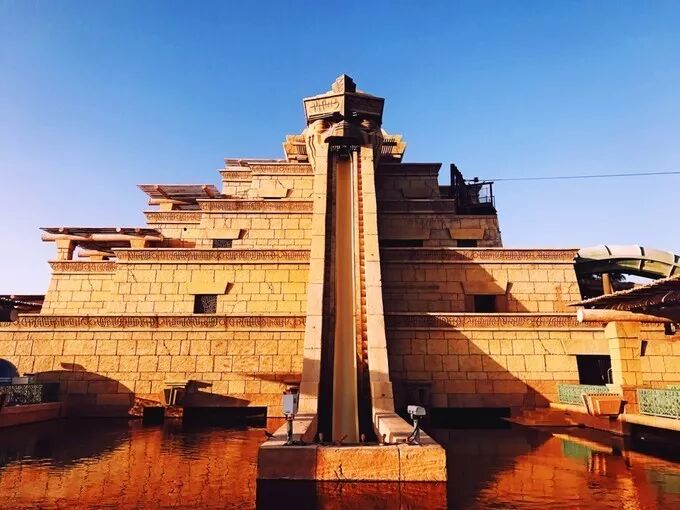 「對於一個在北京都不玩雲霄飛車的我來說,挑戰Leap Of Faith垂直水滑梯真是拼了老命了。它的特色在於垂直,速度快,以及滑落後身邊都是鯊魚的刺激感。」