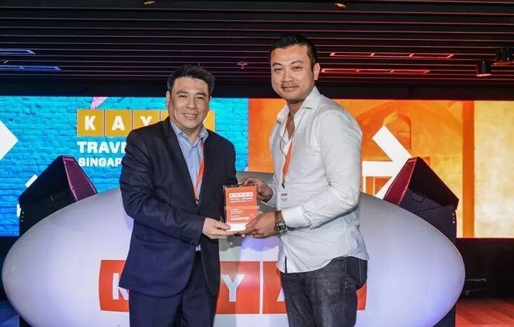 圖為KAYAK亞太區董事Robin Chiang先生為泰旅局新加坡辦事處主任Kajorndet Apichartrakul先生頒發獎項。