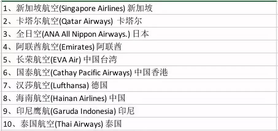 在全球十大的榜單中,有七家是亞洲的航空公司,其中三家是中國的航空公司。Skytrax作為全球最具公信力和獨立性的航空運輸研究認證機構,其每年舉辦的「世界航空公司大獎」被公認為航空業界最高榮譽之一,競爭非常激烈。該獎項評審流程透明、經營獨立、不接受外界讚助影響,有「環球航空業的奧斯卡」美譽。
