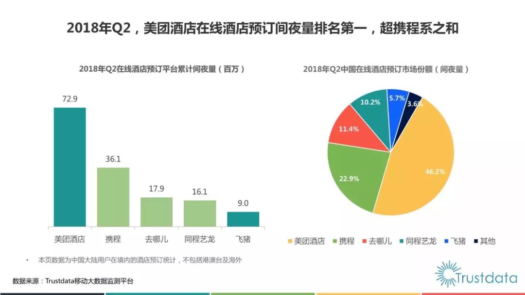 按此推理,美團招股書公布的數據應該不會造假,但是第三方平台Trustdata公布的數據是否可信,外人就不得而知了。不過,美團酒店的實力是不容小視的,畢竟在它背後是即將上市的美團。